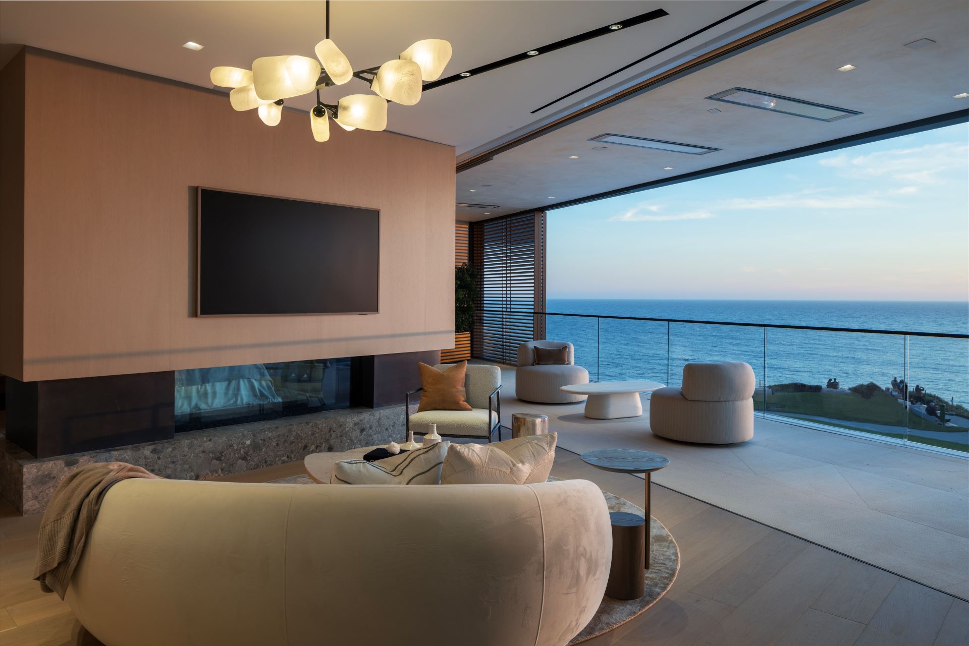 Becoming the most architecturally significant estate constructed along the famed Ocean Boulevard, this residence commands approximately 64ft of priceless unobstructed ocean view frontage directly across from Inspiration Point. With a preferred westerly view orientation, award-winning Home Designer Geoff Sumich has thoughtfully positioned walls of glass to capture year-round sunsets, white-water waves crashing along the beach below and graceful boat activity from the Newport Harbor entrance.